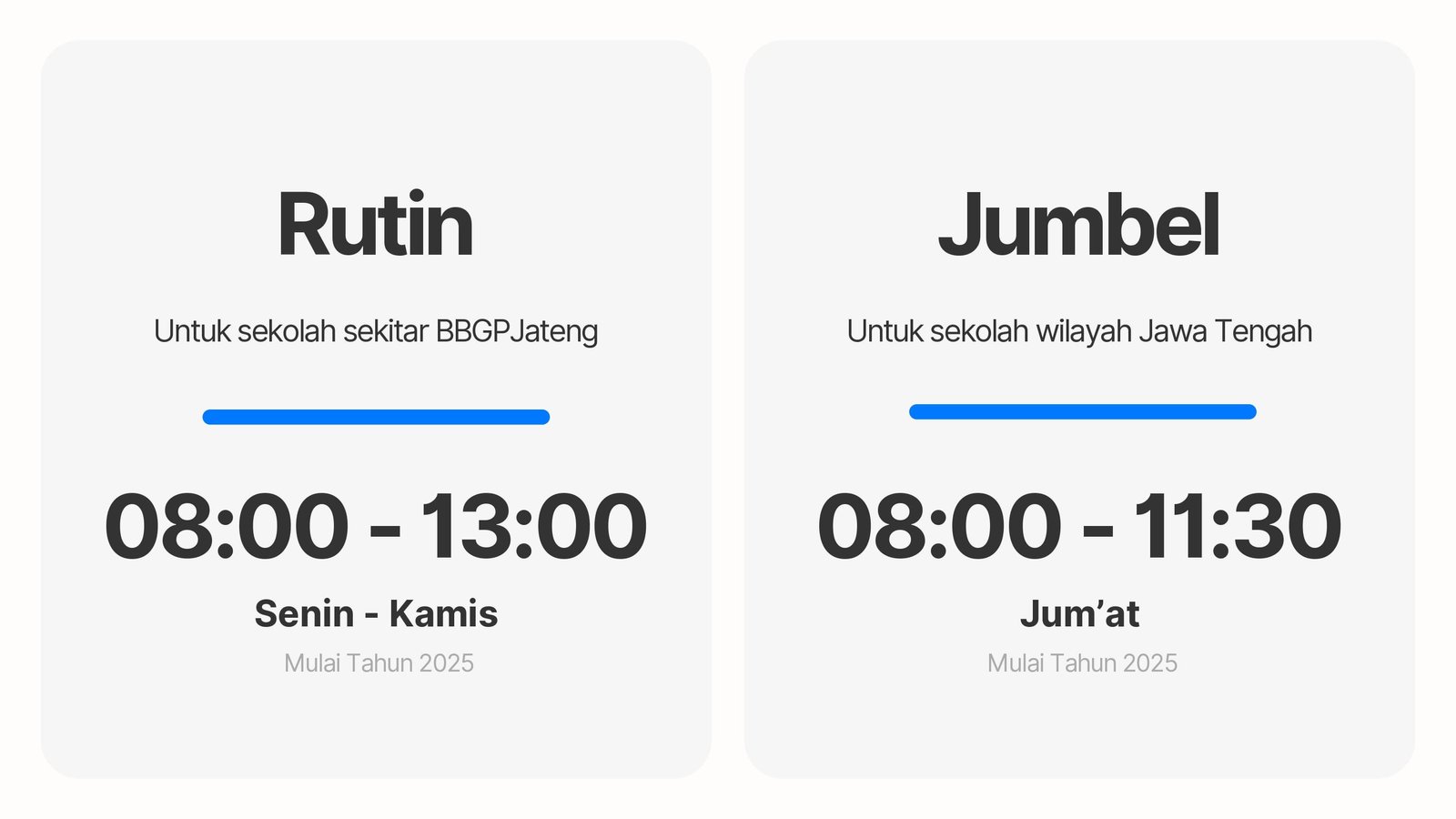 Ruang Belajar / Rumah Pintar dirancang untuk memberikan dukungan berupa fasilitas laboratorium pendidikan yang dapat dimanfaatkan oleh sekolah-sekolah di wilayah Provinsi Jawa Tengah. Ruang Belajar bertujuan untuk Menyediakan ekosistem pembelajaran terpadu yang mendukung pengembangan intelektual, keterampilan teknis, kreativitas, kesehatan mental, dan pertumbuhan personal peserta melalui ruang-ruang tematik yang saling melengkapi.